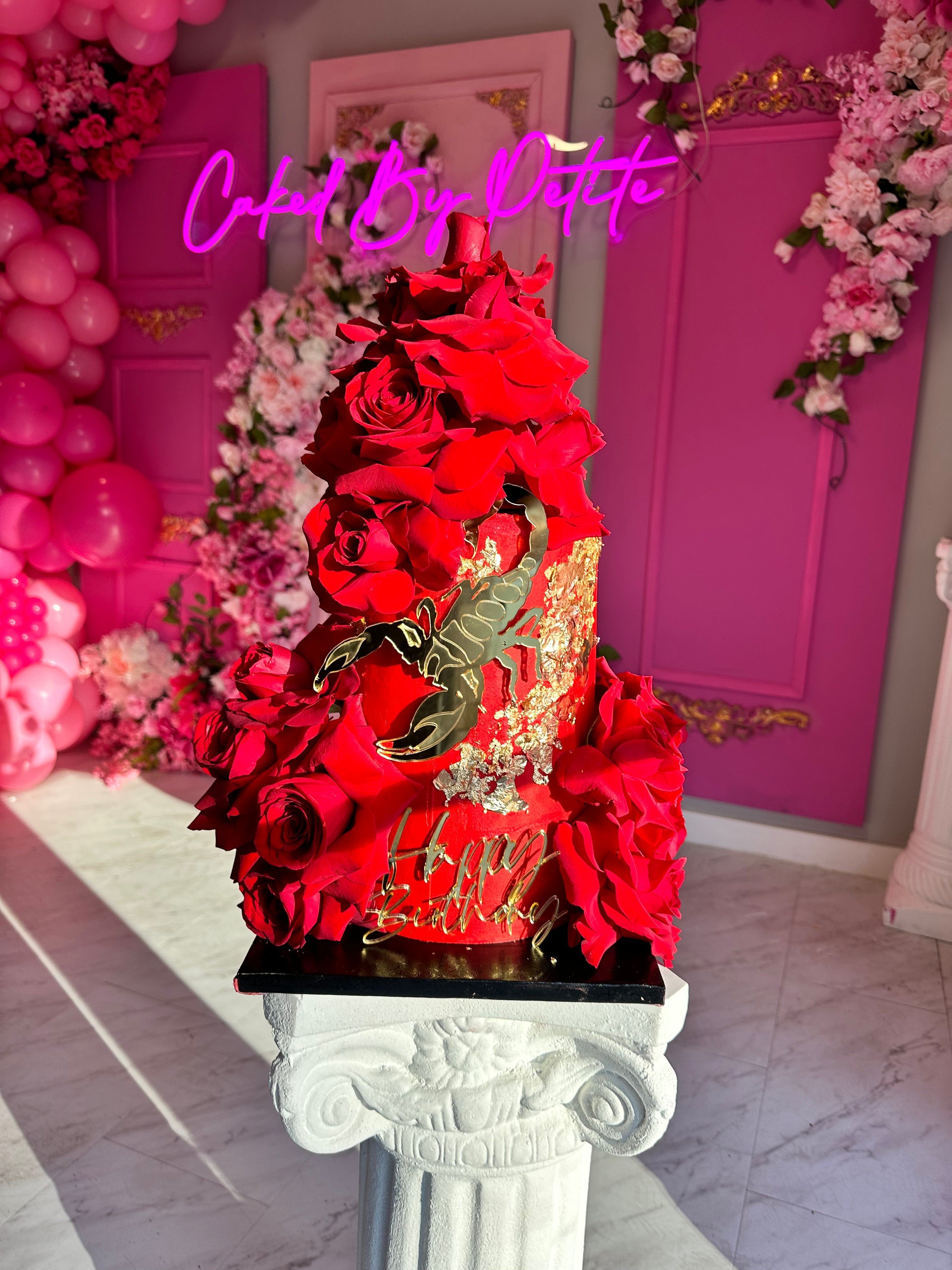 Please choose from the following designs. You are able to change the color, floral color, and cake topper. Please be mindful that the cake topper can only be a name, age, “happy birthday,” happy Anniversary,” or if a phrase, no longer than 3 words.